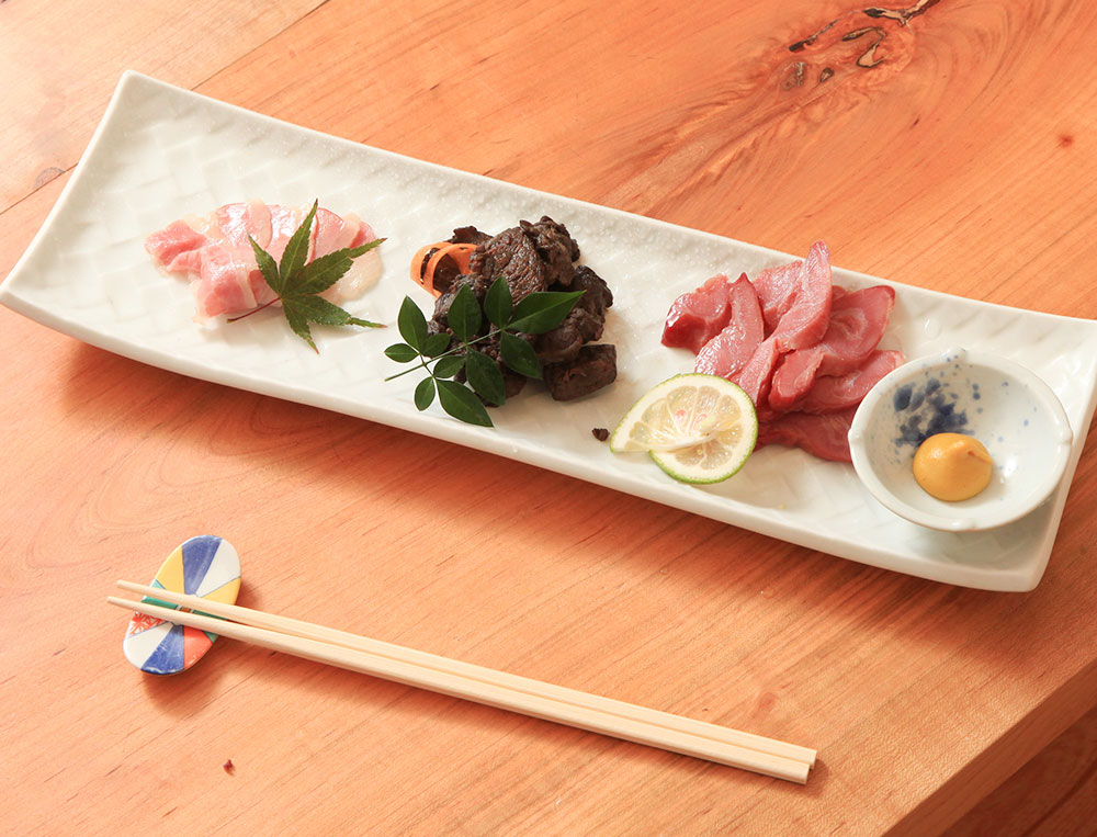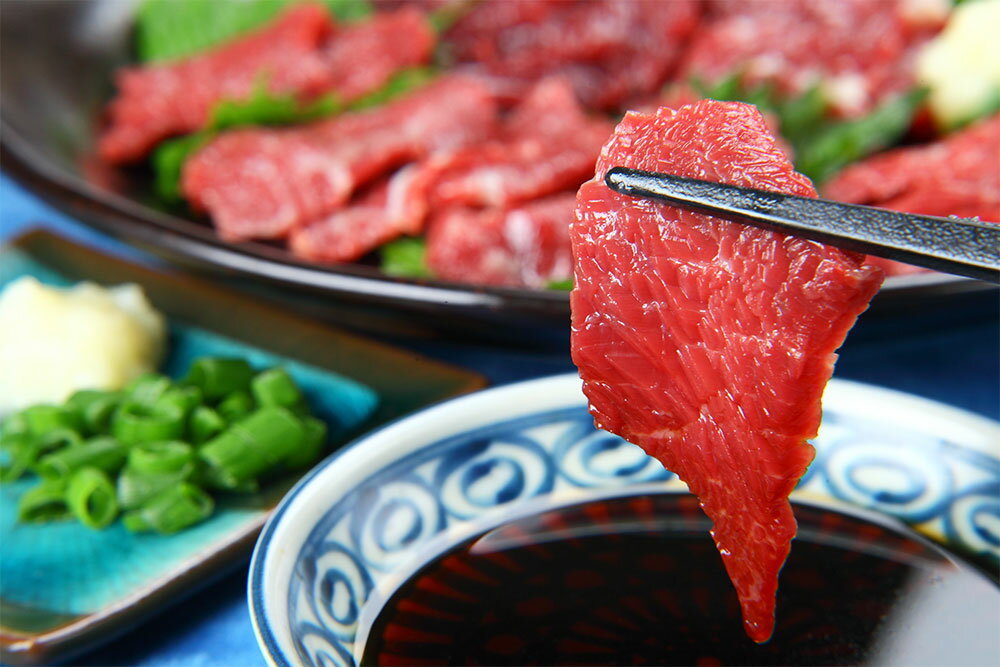 熊本の雄大な自然の中で穀物肥育により育った馬刺しは脂が濃厚なのが魅力でクセになる深い味わいです。