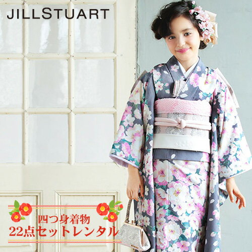 【最大1000円OFFクーポン】【レンタル】 七五三 着物 7歳 フルセット レンタル 四つ身着物22点セットレンタル「グレー地に桜」JILLSTUART 女の子 ひな祭り 衣装 着物 雛祭り お正月 結婚式 発表会 晴れ着