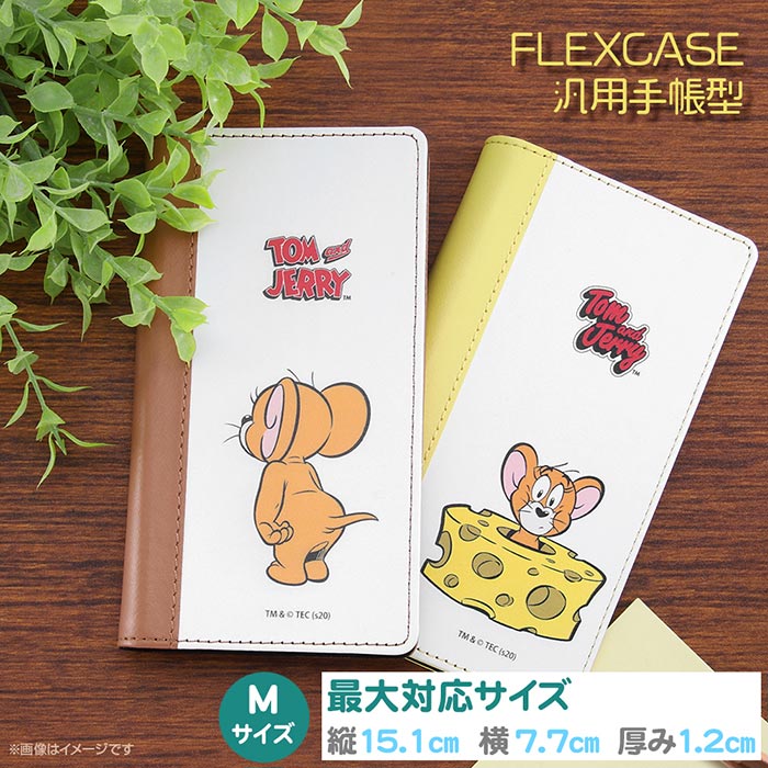 ≪多機種対応≫ トムアンドジェリー キャラクター 汎用手帳型ケース FLEX Mサイズ■装着可能サイズ(約):縦 15.1cm 横 7.7cm 厚み 1.2cm 以内のスマートフォン※15.1×7.7cm以上のスマートフォンは使用できない可能性があります。