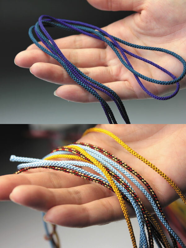 化繊の紐とは違い適度な伸縮性をたせ、堅すぎず滑らかな手触りに仕立てております。