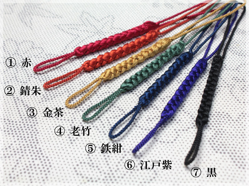 品名 正絹根付紐 片方長坪 商品説明 正絹組紐で出来た根付・木札等の替え紐です。