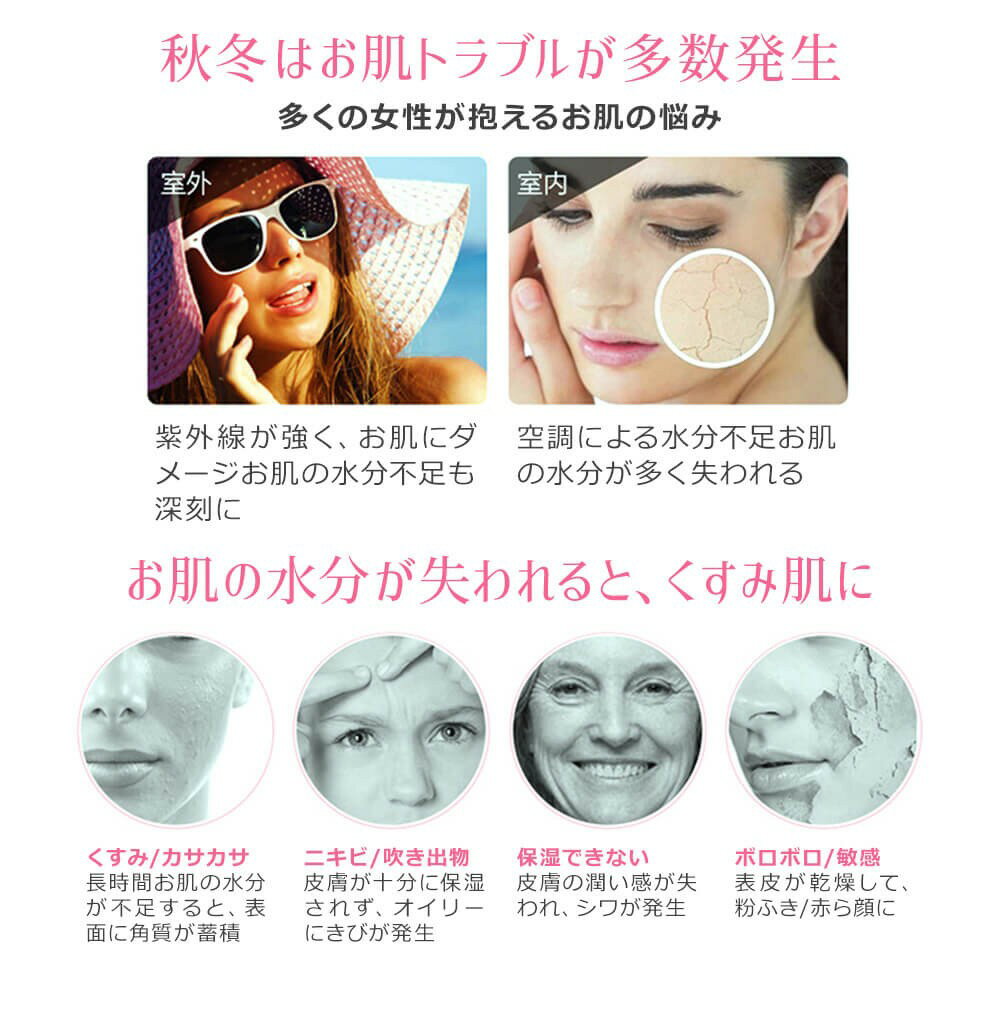 ショップからのメッセージ お肌の水分が減ると、くすみやシワの原因になります。